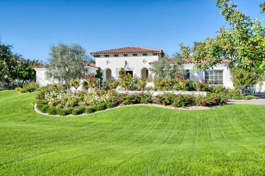 The most expensive home sold in Arizona last week is a sprawling estate located directly across the street from the famous Phoenician Resort. At 6,000 square feet this massive luxury property sits on almost an acre of prime Scottsdale real estate. The exterior is designed with a Mediterranean flare. A soft cream paint scheme combined with contrasting dark wood beams and red speckled terra cotta tiles blend perfectly. As soon as you pull up to this home you're greeted with a carpet of green grass blanketed over rolling hills which isn't often seen here in the desert. Home owners and guests can enjoy the tranquil sounds of the trickling fountain in the front courtyard as they proceed up the walkway towards the large and impressive front door entry. The backyard continues the green theme with more lush grass in which to run and play. The new home owners will also be able to enjoy endless summers in their sparkling pool and relaxing on the extended entertainment patio.