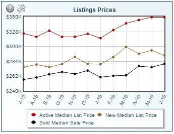 We've got a surprisingly mixed bag of results from June's housing numbers here in Gilbert, Arizona. On some accounts it looks like the busy Summer buying season is here and in full swing already. However, other indicators have the market taking an unexpected downturn that isn't quite normal for this time of year. Let's first break down the numbers. The average Active median list price for a home in Gilbert for the month of June 2016 was $349,000 which is the exact same amount as the previous month. Sold home values experienced a nice increase from $275,000 in May to $280,000 in June. However, new homes being put up for sale had sellers decreasing their asking price expectations in June by over over $7,000.